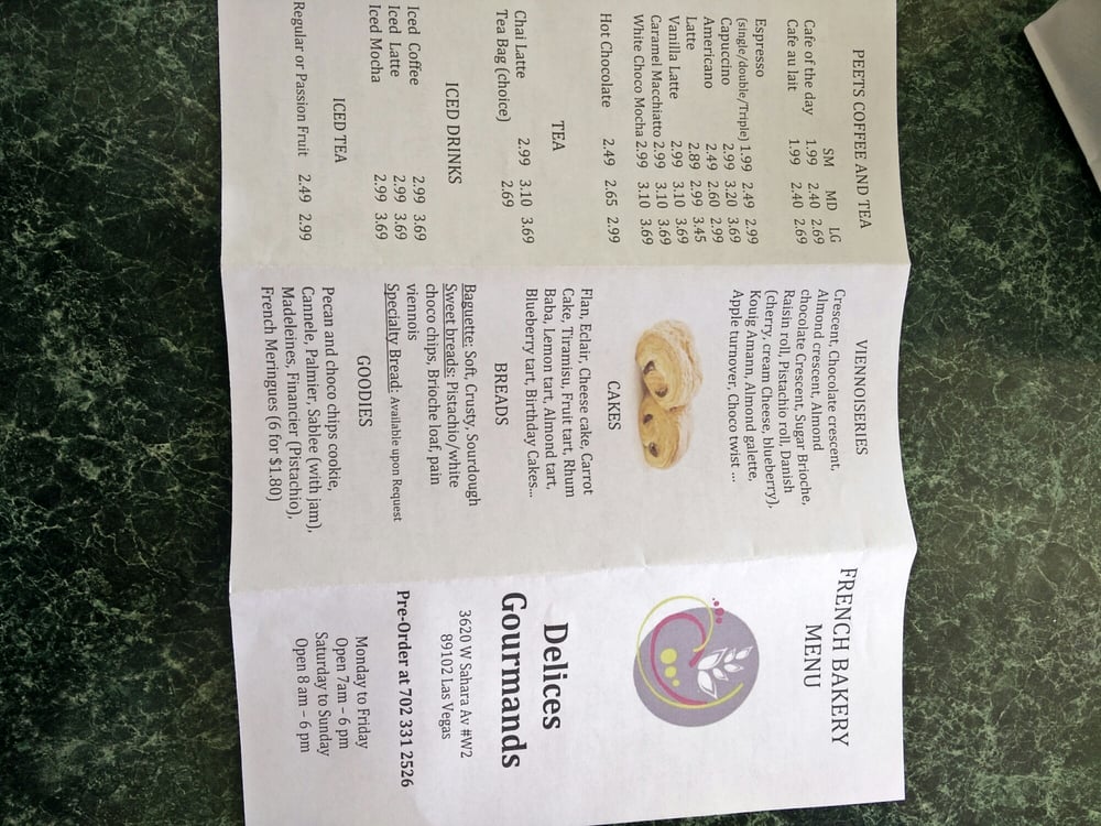 Welcome to Delices Gourmands French Bakery, a delightful bakery nestled in Las Vegas. Here, the essence of French culinary art comes alive through a menu that blends tradition with comfort. Indulge in an array of savory cold and hot sandwiches such as the classic Caprese or the comforting Paris Panini, perfect for a casual lunch. The artistry extends to their sweet crepes, showcasing irresistible flavors like Nutella and strawberry banana paired with whipped cream. Each bite is a journey to France, with highlights including a rich vegetable soup and a dreamy mushroom quiche. Patrons rave about the heavenly pastries, from flaky croissants to buttery tarts, providing an authentic taste of French gastronomy.